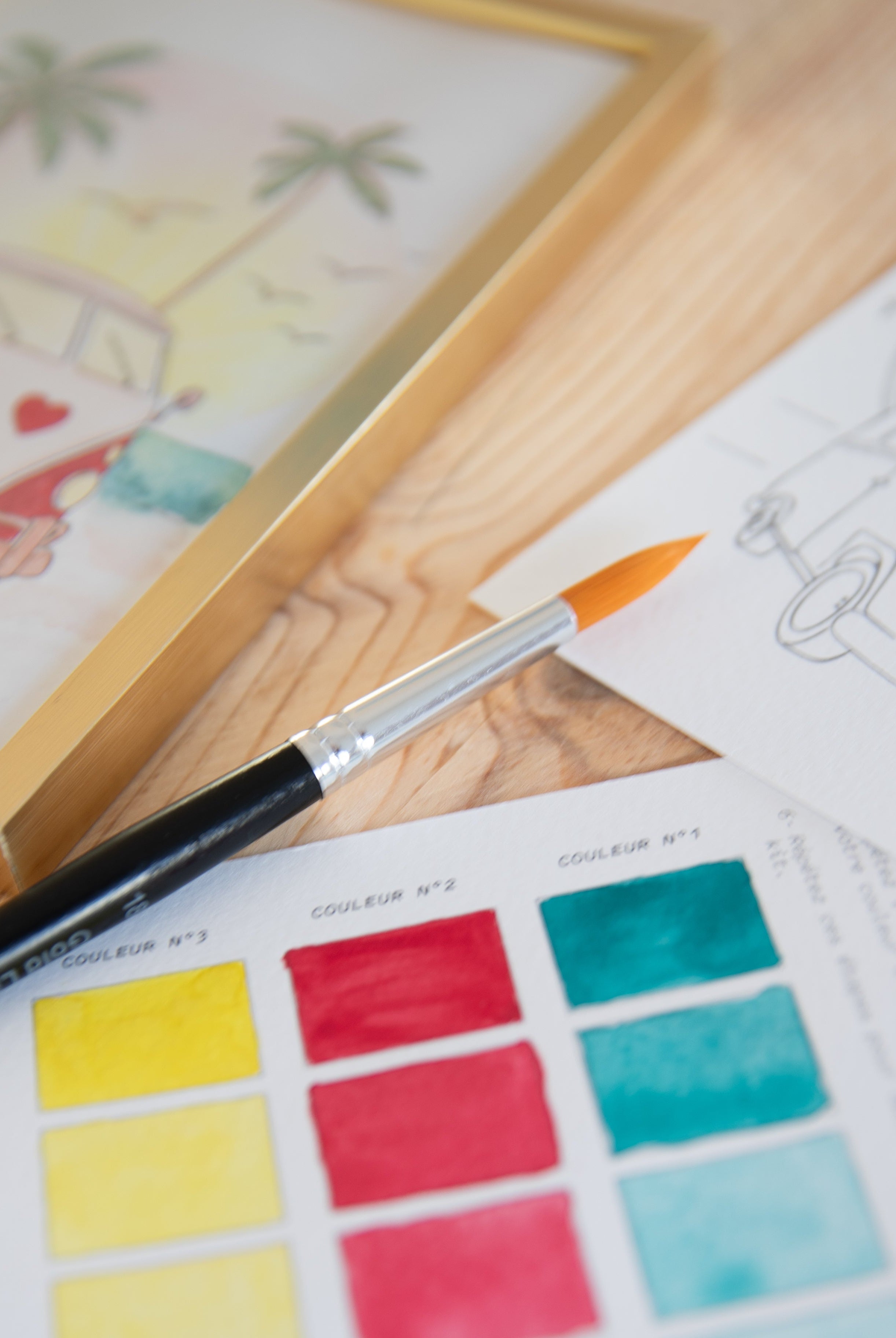 Dans chaque kit, vous avez une palette d'aquarelle aux couleurs propres à chaque kit. Elle est fabriquée en France et fabriquée à la main dans nos ateliers.